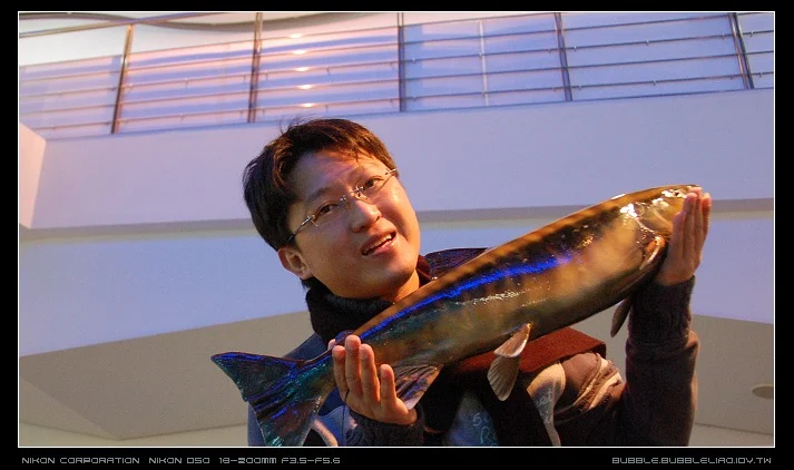 可以讓遊客抓起來,感受一下鮭魚的重量~嗯~還真有點重量 @@
