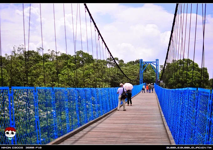走在橋上,放眼望去,的確有許多油桐樹,不過,還有花兒的已經不多了 Orz